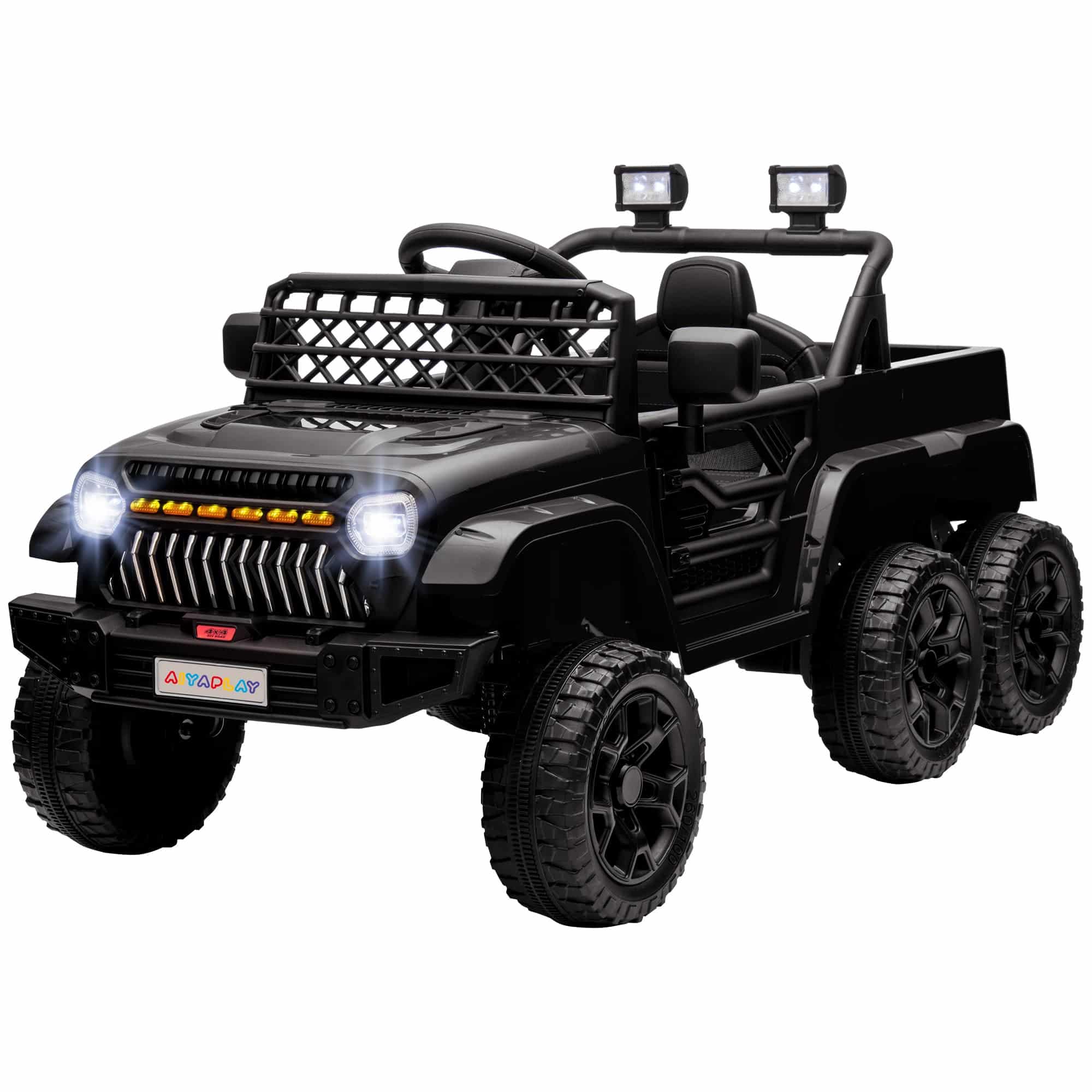 12V elektrisk kørebil med anhænger, led-lys, musik og horn, til børn i alderen 3-8, sort