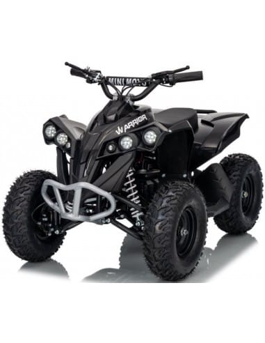 Elektrisk 4x12V Warrior ATV bil til børn, udført i et design af sort metal og kunststof. Elbilen passer til børn i alderen 5+ år og måler 53 cm i højden og 118 x 66 cm i længde og bredde. Denne ATV kan køre mellem 11 – 35 km/t og har luftfyldte gummihjul.